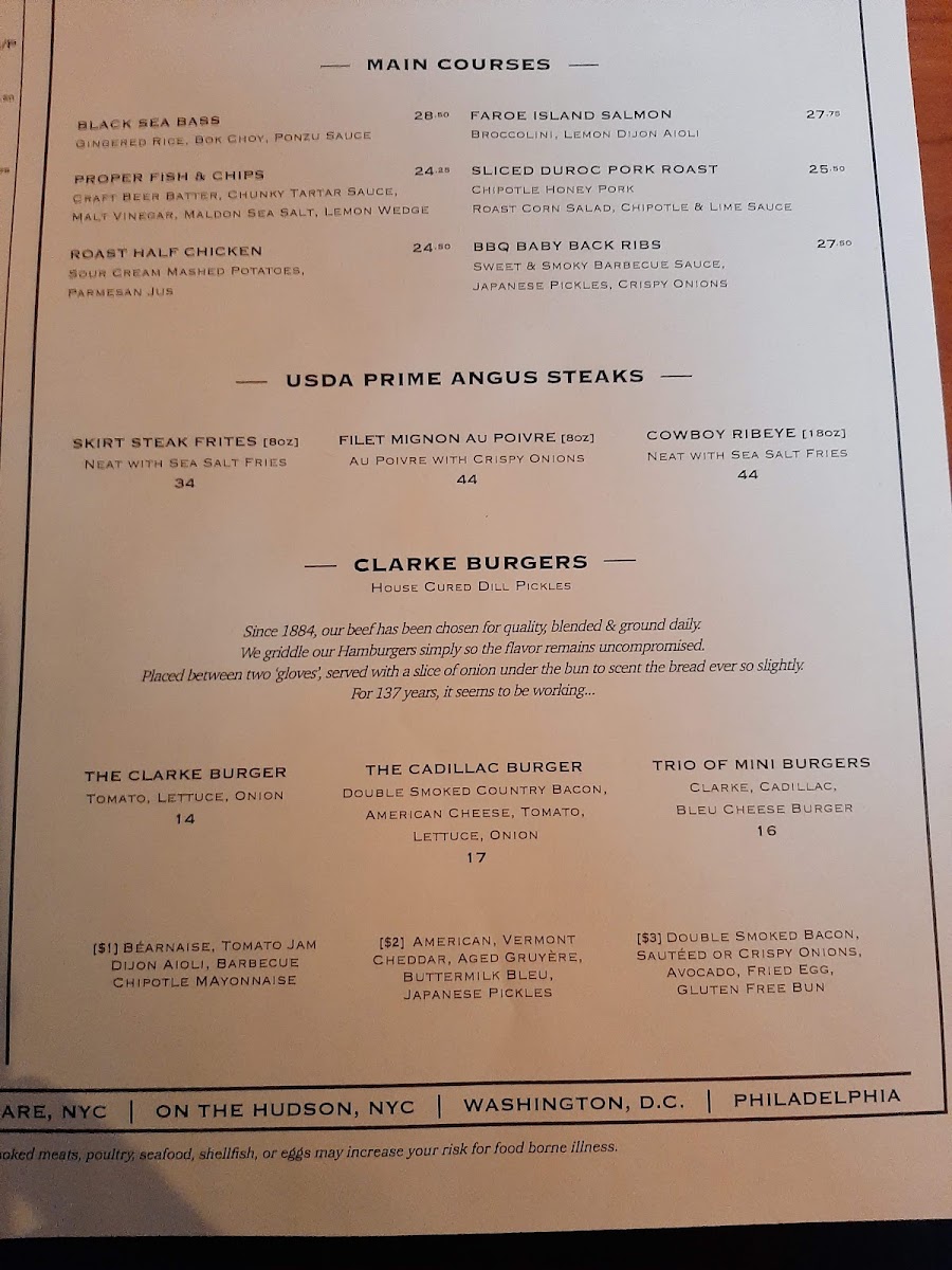 The menu highlights include half sandwiches paired with soup or salad, featuring the savory Roast Turkey Club and the rich Petite Cedar Plank Salmon. Seafood lovers will delight in the Cedar Plank Salmon with fava bean succotash, echoing the restaurant's commitment to quality.